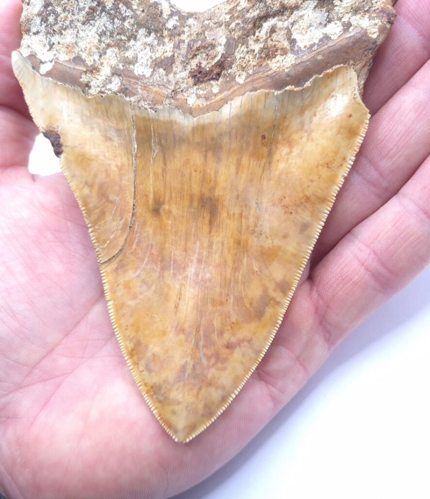 Weiß/beige Megalodon Haizahn. Perfekt gezackt !