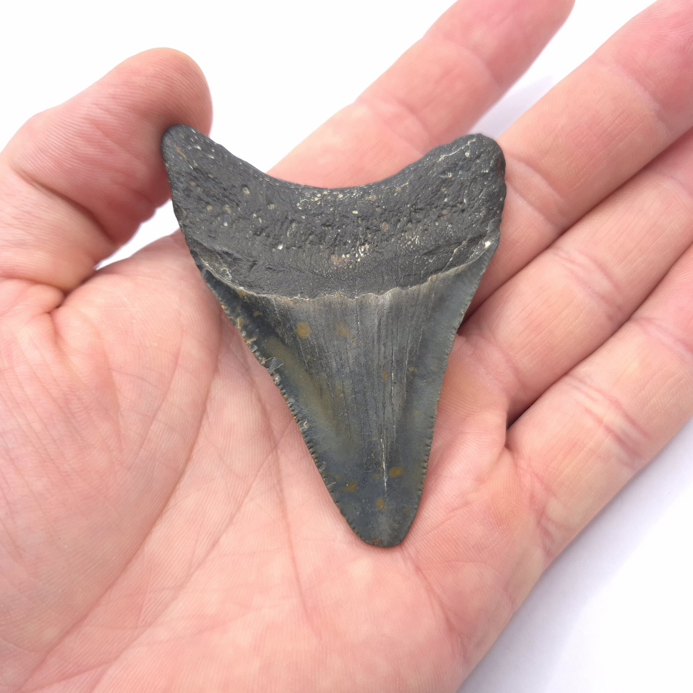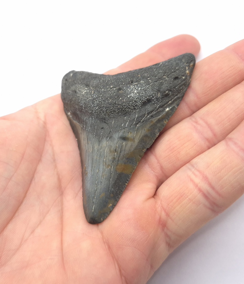 Du bist hier: Startseite1 / Fossilien und Haifischzähne kaufen2 / Megalodon Haizahn Fossilien3 / unrestaurierte Haizähne kaufen4 / Flecken. Schöner kleiner und dunkler Megalodon Haizahn