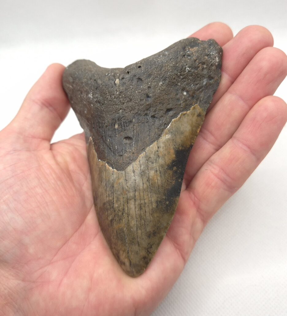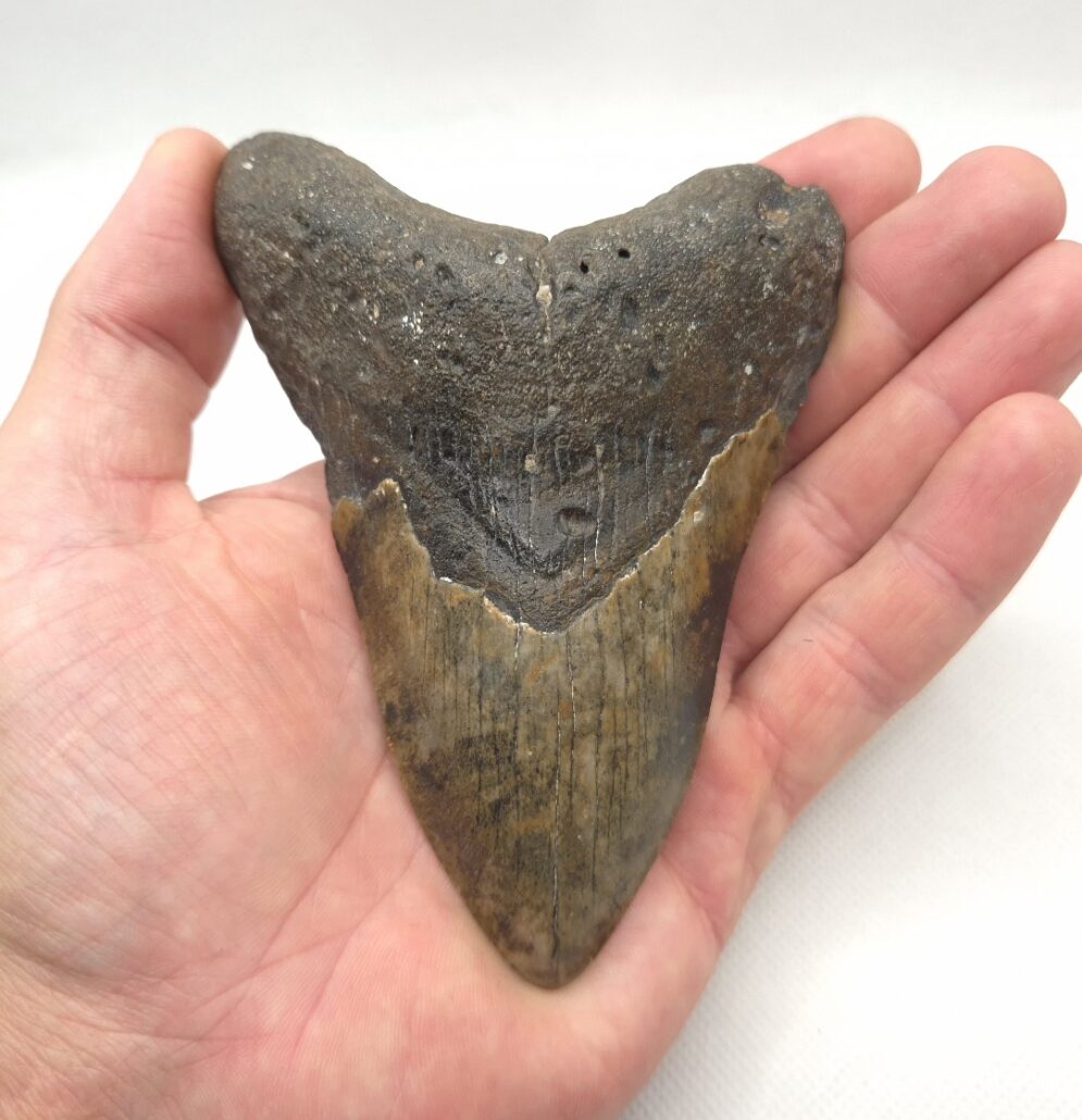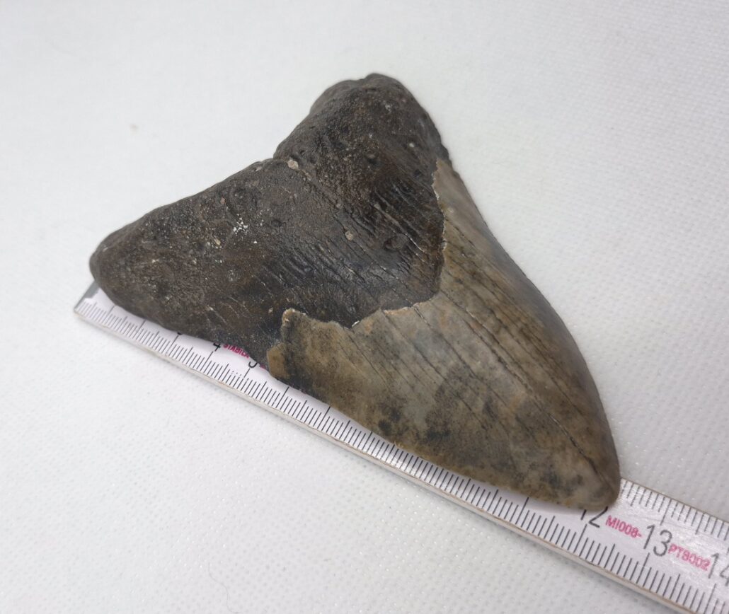 Hai Zahn Fossil Megalodon Haizahn 12,3 cm Kantenlänge 108