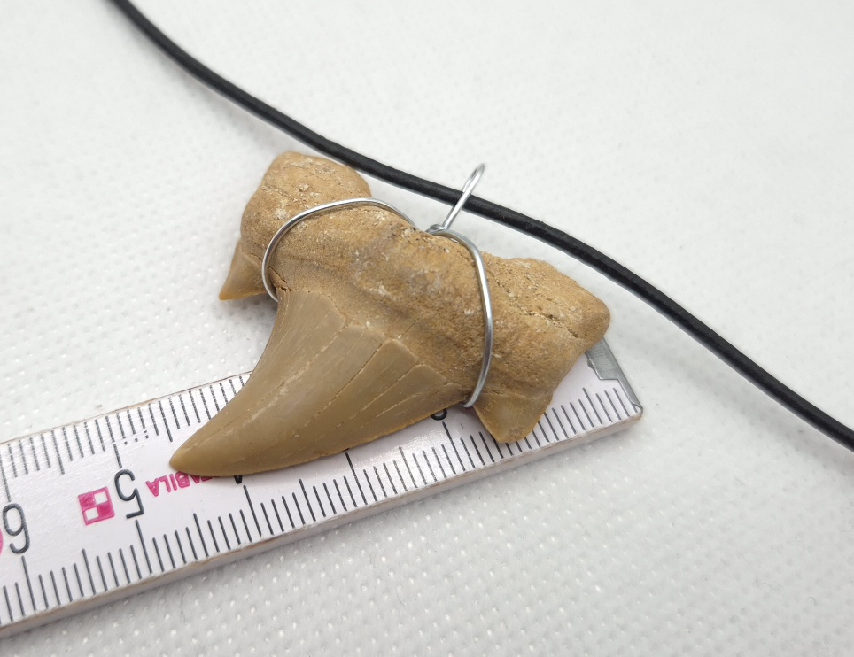 Du bist hier: Startseite1 / Fossilien und Haifischzähne kaufen2 / Fossilien Schmuck, Ketten, Anhänger3 / Haizahn Halskette Lederband Otodus Obliquus Hai