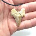 Schöne Halskette mit einem versteinerten Haizahn (Otodus obliquus) aus Marokko. Der Zahn ist mehrere Millionen Jahre alt.