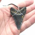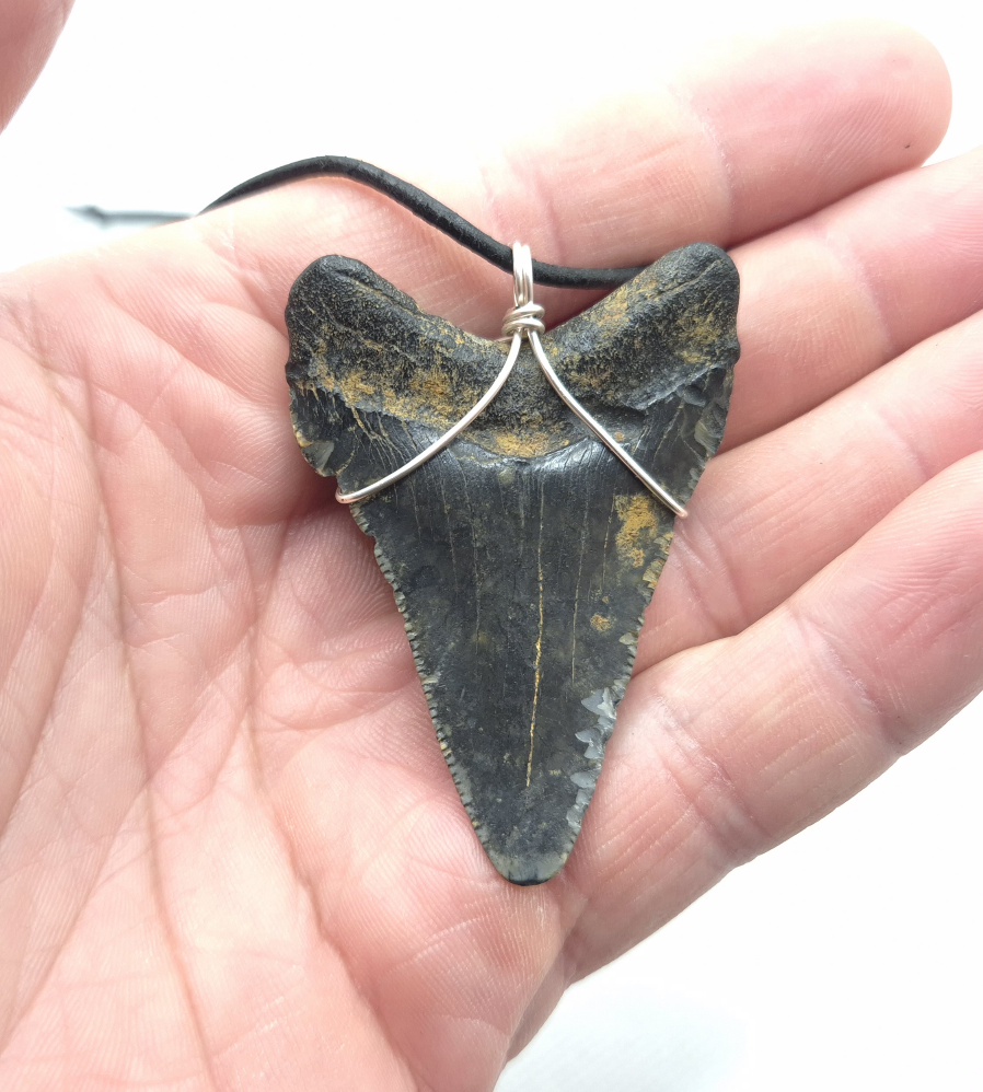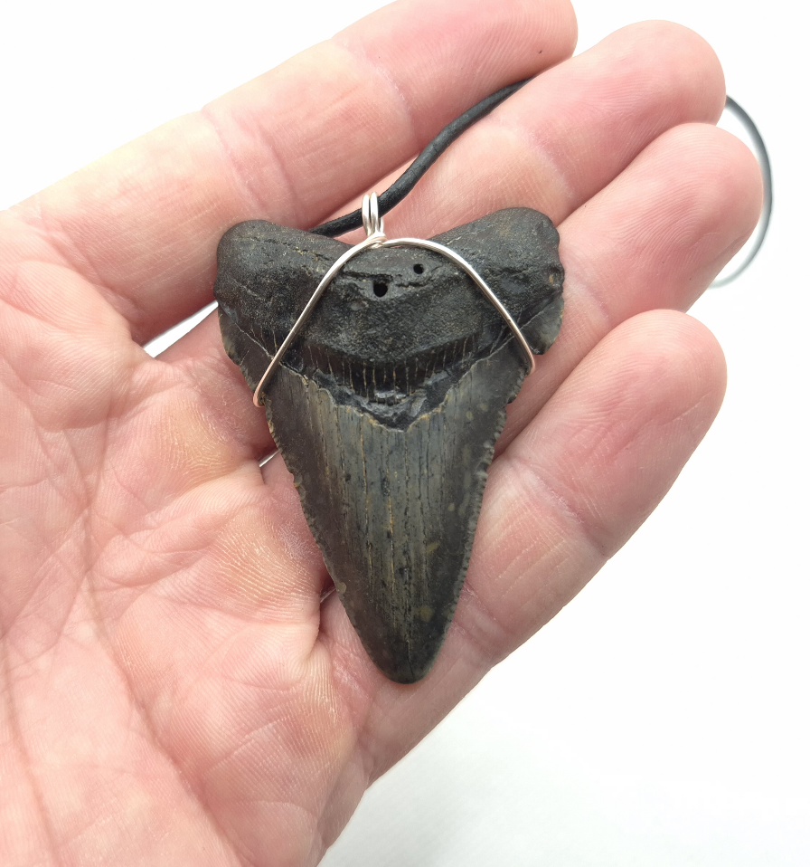 Schöne Megalodon Halskette mit einem versteinerten Haizahn (Otodus Megalodon) aus Wilmington in North Carolina USA.