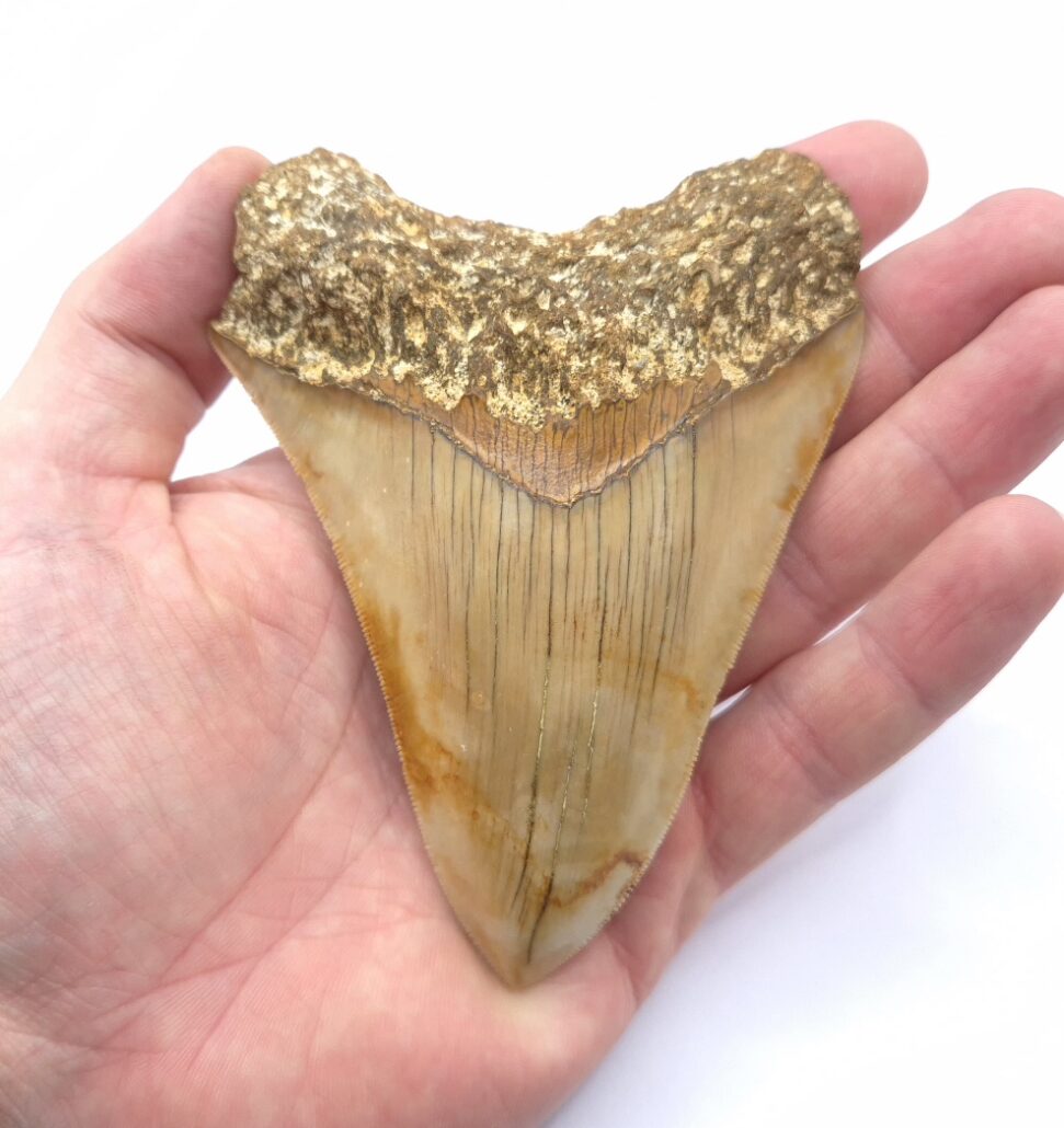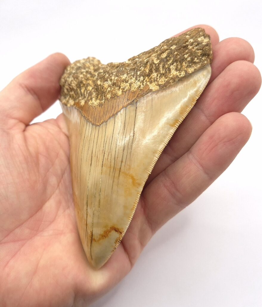 Du bist hier: Startseite1 / Fossilien und Haifischzähne kaufen2 / Megalodon Haizahn Fossilien3 / unrestaurierte Haizähne kaufen4 / Orange. Sehr schöner und scharf gezackter Megalodon Hai Zahn