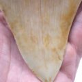 Orange. Sehr schöner und scharf gezackter Megalodon Hai Zahn 30