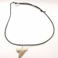 Schöne Halskette mit einem versteinerten Haizahn (Otodus obliquus) aus Marokko. Der Zahn ist mehrere Millionen Jahre alt.